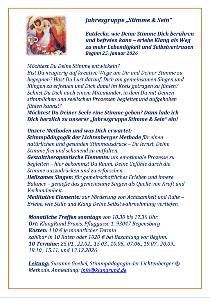 Ort: KlangRund Praxis, Am alten Kornmarkt, Pfluggasse 1, 93047 Regensburg